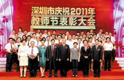 9月9日下午,2011年深圳市慶祝教師節表彰大會在廣電集團1800演播廳舉行,市委副書記、市長許勤、市委副書記王穗明、市人大常委會常務副主任譚國箱、副市長吳以環、市政協副主席林潔、市政府副秘書長黃國強、市教育工委書記、教育局局長郭雨蓉和全市教育界代表出席了大會,章必功校長榮膺2011年度全市唯一“教書育人模范”。 許...
