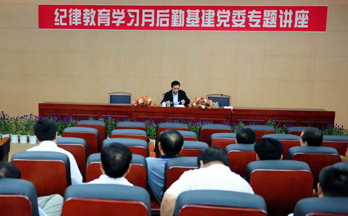 10月14日下午,校紀委辦公室和后勤基建黨委在圖書館一樓報告廳開展紀律教育學習月廉政教育專題活動。校黨委副書記、紀委書記陶士平、副校長李永華和后勤基建黨委全體黨員及后勤部、基建部下設部門負責人參加了本次活動。 本次專題活動首先組織觀看了由中央紀委拍攝的反腐倡廉警示教育片《工程建設領域腐敗剖視錄》。與會人員通過觀看近年來工程建設領域發生的部分典型腐敗案例,提高反腐倡廉意識,做到警...