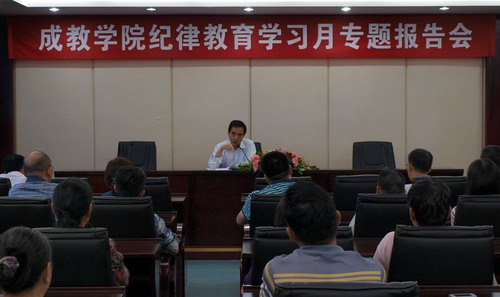 10月26日,成教學院舉辦紀律教育學習月專題報告會。會議邀請了學校黨委副書記、紀委書記陶士平同志為全體教職員工作反腐倡廉專題輔導報告。成教學院和全體教職員工參加了報告會。 陶士平的報告圍繞“現狀、分析、對策”三個方面內容展開。報告抓住重點,切中時弊,用大量數據和事例說明了反腐倡廉的嚴峻形勢和開展教育活動的重大意義,深刻剖析了近幾年來發生的違紀違法事件的成因。陶士平就廉政工作提出...