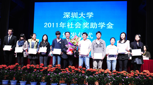 12月28日下午,我校2010-2011年度獎助學金頒發儀式在國際會議廳舉行。好日子獎學金、永亨銀行獎學金、恒生銀行內地獎學金、肯德基曙光基金助學金、慈文新生獎助學金、永旺教育基金、獅子會勵學金、深大校友高爾夫俱樂部獎助學金等各設獎(助)單位代表,我校校長章必功,黨委副書記陶一桃、副校長李永華,各學院、部室負責人和社會獎助學金獲獎學生代表參加了儀式。儀式由李永華主持。 會上,陶一桃宣讀了...