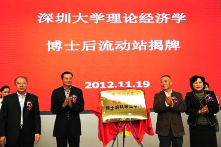 經(jīng)國家人力資源和社會(huì)保障部批準(zhǔn),我校新獲設(shè)立“理論經(jīng)濟(jì)學(xué)”和“信息與通信工程”兩個(gè)一級學(xué)科博士后流動(dòng)站。11月19日上午,我校在南區(qū)醫(yī)學(xué)院學(xué)術(shù)報(bào)告廳舉行新設(shè)博士后流動(dòng)站揭牌儀式。深圳市人力資源和社會(huì)保障局局長王敏,廣東省人力資源和社會(huì)保障廳專業(yè)技術(shù)處處長劉紹輝,我校黨委書記江潭瑜,黨委副書記陶一桃,副校長阮雙琛,科學(xué)技術(shù)部、社會(huì)科學(xué)部相關(guān)負(fù)責(zé)人,相關(guān)學(xué)院博士生導(dǎo)師,全校各單位主管科研院長,科研秘書,在...