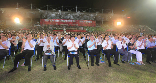 王榮寄語深大加快建成現代化一流大學 9月13日晚,星光璀璨,荔園歡騰。深圳大學田徑場洋溢著歡樂的笑聲和祝福聲。深圳大學建校30周年暨2013年開學典禮在此舉行。廣東省委常委、深圳市委書記王榮出席典禮并致辭,希望深圳大學以建校30周年為新起點,在教學、科研、管理、團隊建設、現代大學制度等方面不斷大膽探索,為辦成高水平、有特色、現代化一...