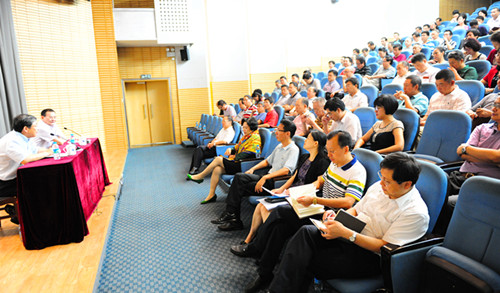 9月5日下午,“儒學的當代傳播”學術座談會在我校文科樓1100會議室舉行,中華大成至圣先師孔子協(xié)會會長孔垂長、臺灣政治大學教授董金裕、臺灣大學教授葉國良、深圳大學校長李清泉、副校長李鳳亮、社會科學部部長田啟波、文學院黨委書記楊東林、文學院院長景海峰、文學院副院長范曉燕、文學院副院長相南翔以及文學院王立新教授、張劍濱教授、王興國教授等,就儒學文化的傳播發(fā)表了各自的見解。  ...