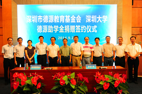 9月26日上午,深圳市德源教育基金會(huì)助學(xué)金捐贈(zèng)簽約儀式在我校國(guó)際會(huì)議廳D廳舉行,市政協(xié)副主席王毅,市教育工委副書(shū)記范志剛,德源教育基金會(huì)理事長(zhǎng)顏堅(jiān)華,監(jiān)事長(zhǎng)許俊波,秘書(shū)長(zhǎng)曾鐵山等理事會(huì)成員,深圳大學(xué)校長(zhǎng)李清泉,副校長(zhǎng)李鳳亮、黎軍,各學(xué)院、相關(guān)部門(mén)負(fù)責(zé)人,師生代表等出席現(xiàn)場(chǎng)。儀式由黎軍主持。 黎軍介紹說(shuō),深圳大學(xué)近年快速發(fā)展,生源質(zhì)量不斷提升,但同時(shí)家庭經(jīng)濟(jì)困難學(xué)生也在不斷增加。據(jù)統(tǒng)計(jì)...