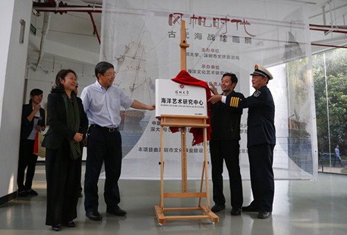 古代海戰(zhàn)繪畫展及深圳大學(xué)海洋藝術(shù)研究中心揭牌儀式在深大美術(shù)館舉行