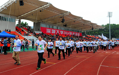 12月2日上午,深圳大學元平體育場人頭攢動、彩旗飄揚,我校在此舉行2014年深圳大學綜合運動會開幕式,全體在家校領導,各學院、各教研教輔單位,機關各部、室負責人以及數千名荔園師生參加儀式。開幕式由副校長黎軍主持。 開幕式在雄壯的國歌聲中開始,全場肅立,國旗冉冉升起。 據介紹,2014年深圳大學在各級各尖體育競賽中獲得嘉績。獲全國大學生錦標...