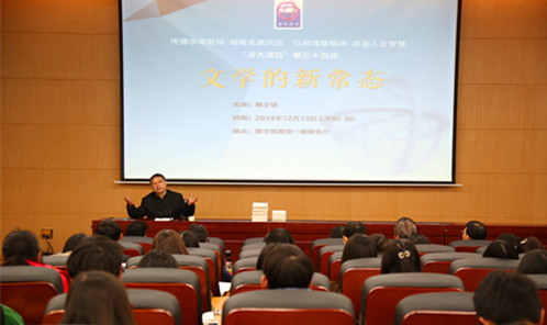 12月13日上午,深大講壇第三十五講在圖書館南館報告廳舉行,現代知名作家韓少功為荔園學子帶來了題為“文學的新常態”的講座。 韓少功通過對比歷史和現代的不同的社會環境來描述文學的變化。他認為文學在歷史中具有認知和娛樂功能。在古代由于沒有網絡、電視等信息傳播工具,文學是眼睛,是認識人生、認識世界的工具,例如《漢書》等長篇巨作有大幅文字描繪具...