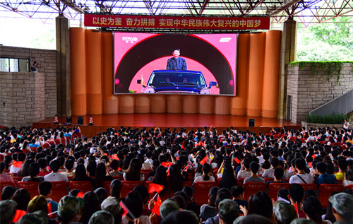9月3日上午10時,我校在演會中心現場直播了中國人民抗日戰爭暨世界反法西斯戰爭勝利70周年閱兵儀式。我校副校長李鳳亮及兩千余名師生齊聚一堂,觀看了本次閱兵儀式。 上午9時,演會中心外已有眾多學生排隊,秩序井然地憑票入場。9點30分,全場座無虛席,部分學生只能站在后排觀看。當李克強總理宣布起立奏國歌時,全體師生起立,肅穆地凝視著大屏幕中緩緩上升...