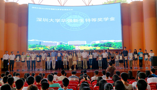 10月28日下午,我校2015年華強新生獎學金頒發儀式在演會中心舉行。深圳華強集團有限公司董事兼副總裁張哲生、華強云投資控股有限公司投資發展中心總經理陳雪,我校校長李清泉,副校長李鳳亮,校辦、教務部、學生部、招生辦、各學院相關負責老師以及受表彰的全體學生、相關學院學生代表出席了頒獎儀式。 深圳華強集團有限公司創建于1979年,是一家以高科技產業為主導的大型投資控股企業集團。深圳華...