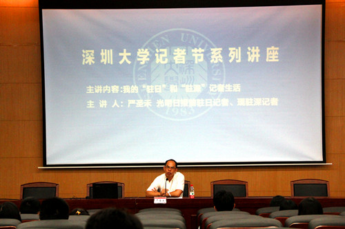 11月18日下午,深圳大學第六屆記者節系列活動第二場講座在南圖報告廳舉行。光明日報前駐日記者、現駐深記者嚴圣禾做客深圳大學,與同學們分享在國內外的記者生活和體驗。 嚴圣禾主要圍繞“我眼中的日本”、“我眼中的日本媒體”講述駐日期間的所見所聞,為我們展現了日本在傳統與現代、開放與保守、文明與野蠻相互交融的生活圖景,加深了我們對日本的了...