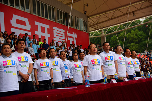 12月1日上午,深圳大學元平田徑場人潮涌動,彩旗飄揚。我校在此舉行2015年深圳大學綜合運動會開幕式,全體在家校領導,各學院、各教研教輔單位,機關各部、室負責人以及數千名荔園師生參加儀式。開幕式由副校長徐晨主持。 開幕式在激揚的國歌聲中開始,全場肅立,國旗冉冉升起,航拍記錄了整個過程。 校長李清泉致辭。他說,運動可以鍛煉...