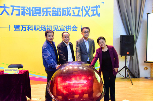 12月4日下午,“深大萬科俱樂部成立儀式暨萬科職場初見宣講會”在科技樓2號報告廳舉行,深圳大學黨委副書記張基宏、萬科集團副總裁周彤、深圳營運總監辜慶永,我校團委負責人等出席了本次儀式。在張基宏書記和周彤副總裁的見證下,校團委副書記周浩江與辜慶永總監正式簽署合作協議并揭牌。 這是深圳房企界首個創建的大學俱樂部,也是萬科將企業文化融入校園的又一創新舉措。會上,辜慶永向荔...