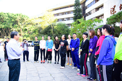12月2日上午,八一女排教練及運動員一行人走進深大,參觀校園。我校校長李清泉、副校長徐晨會見了八一女排。 李清泉對八一女排走進深大表示歡迎。他說,深圳大學建校32周年,現占地面積2.5平方公里,在校學生3.4萬名,校內植被覆蓋面積大,是全國最美麗的高校之一。深圳大學經過30多年的不懈成長,現已發展成為一所學術比較整齊,各方面資源比較完備的綜合性大學。我校的體育設施...