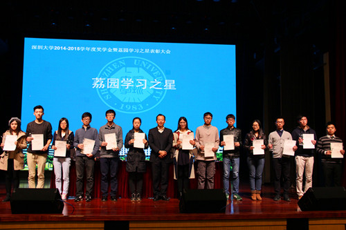 12月18日下午,我校2014-2015學年度獎學金暨荔園之星表彰大會在國際會議廳舉行。副校長李鳳亮,宣傳部、教務部、學生部負責人,以及各學院分管學生工作的老師、獲獎學生代表400余人出席了本次大會。 學生部副主任馬文澤宣讀《關于表彰深圳大學2014-2015學年度校級獎學金獲獎學生的決定》。2014-2015學年度,我校共有150個班集體獲先進班集體,3671名學生獲學業優等生,1020名學生獲優秀學生干...