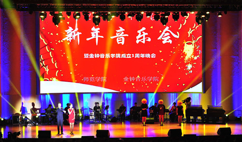 我校舉辦2016新年音樂會·暨慶祝金鐘音樂學(xué)院成立三周年晚會 12月29日晚,金鐘音樂學(xué)院在我校演會中心舉辦了2016年新年音樂會暨慶祝成立三周年晚會。我校副校長李鳳亮、深圳市音協(xié)主席姚峰、有“中國音樂劇教父”之稱的著名音樂制作人李盾、深圳廣電集團(tuán)娛樂頻道總監(jiān)夏楓、我校各部門領(lǐng)導(dǎo)、金鐘音樂學(xué)院師生,以及全校師生等近2000人參加慶典并觀看演出。 李清泉校長、金鐘...