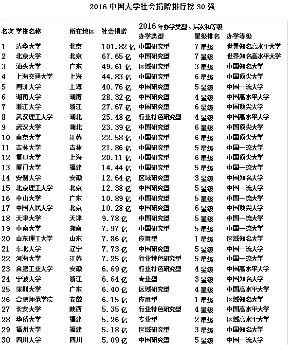 根據艾瑞深中國校友會網日前發布的《2016中國大學評價研究報告》,深圳大學在大學排行榜的位次由去年的105位躍升至87位,校友捐贈和社會捐贈均位列全國前茅,加速發展態勢明顯。 2015年12月30日,艾瑞深中國校友會網發布了2016中國大學排行榜100強、2016中國一流大學排行榜、2016中國大學社會捐贈排行榜和2016中國大學校友捐贈排行榜。作為國內知名第三方評價機構,艾瑞深中國校友會網大學排行榜的評價指標綜合反映了高校在人才...