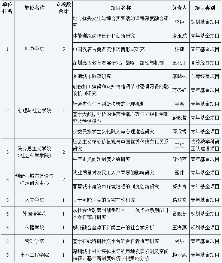 近日,2016年度教育部人文社科研究項目評審結果在社科網公示,我校共有18個項目獲教育部資助,其中常規項目17項(含規劃基金項目、青年基金項目、自籌經費項目),專項項目1項,常規項目立項數在全國高校中排名第9,在全省高校排名第2,全國排名比去年上升23名(去年全國排名第32名)。具體立項信息如下: (社會科學部 供稿)