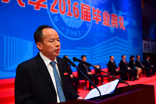 6月19日上午,我校2016屆優秀畢業生表彰大會在元平體育館舉行。校領導江潭瑜、李清泉、張基宏、陶一桃、阮雙琛、李鳳亮、黎軍、徐晨,各學院、各機關部門負責人、教師代表、2016屆優秀畢業生以及部分家長前來參加了表彰大會。大會由副校長黎軍主持。