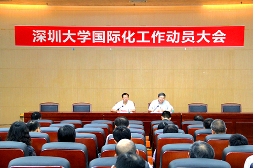 6月17日下午,我校在圖書館南館報告廳召開全校國際化工作動員大會。校長李清泉,副校長李鳳亮,以及各學院領導、機關各部室的正職領導參加了大會。 國際交流與合作部副主任彭小剛為大家解讀了相關文件。《國家中長期教育改革和發展規劃綱要(2010—2020年)》明析了我國發展的國際化大的趨勢和背景,同時提到國際化是高水平大學建設的一項重要考評指標。我校國際交流與合作部依據這個文件,以“立足深圳,面向國際”為出發點,從...