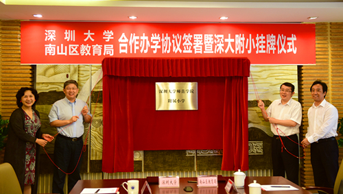7月6日下午,我校與南山區教育局合作辦學協議簽署暨深大附小揭牌儀式在辦公樓301舉行。南山區區長王強、區教育局黨委書記、局長劉根平,南山區教育局副局長周新森及南山區教育局相關部門負責人員,我校校長李清泉,校紀委書記、黨委副書記陶一桃,師范學院、黨政辦、學工會等相關部門負責人出席了會議。 李清泉代表深圳大學向南山區政府、南山區教育局對表示感謝,希望通過此次項目能夠加強雙方合作。他說,深圳大學師范學院附屬...