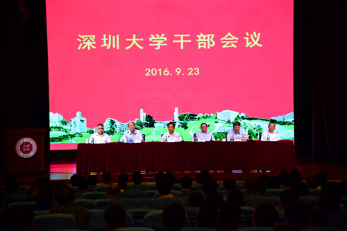 9月23日上午,我校召開干部大會。廣東省委教育工委書記、省教育廳廳長羅偉其,深圳市委教育工委書記、教育局局長、黨組書記張基宏,市委組織部副部長、市兩新組織黨工委書記唐桂陽,我校校領導、各教學、教輔單位班子成員、中層正、副職干部,三級以上教授、以及市人大代表和政協委員,各民主黨派基層組織負責人共300余人出席大會。會議由深圳大學校長李清泉主持。 會上,羅偉其代表廣東省委宣讀任免決定,任命劉洪一為深圳大學...