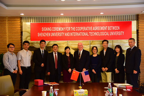 10月31日上午,我校與美國國際科技大學在辦公樓301會議室舉行合作協議簽訂儀式。美國國際科技大學校長Gregory O’Brien、電子計算機工程系、藝術設計系負責人等,與我校副校長黎軍、信息工程學院、計算機與軟件學院及藝術設計學院負責人出席了協議簽訂儀式,并進行了座談。 黎軍對Gregory O’Brien一行的來訪表示歡迎。她說,美國國際科技大學(下文簡稱ITU)位于硅谷,而深圳正在打造中國的硅谷,深大所屬的深圳市南山區是高新...