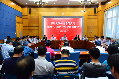 11月2日下午,我校在國際會議廳D廳召開大會,傳達學習貫徹黨的十八屆六中全會精神。全體在家校領導,各學院院長或主持工作副院長、各基層黨委(總支)書記、機關各部室、各直屬教研教輔單位正職負責人或主持工作的副職負責人參加學習。