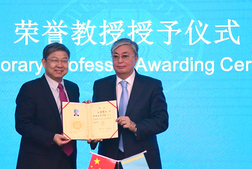 哈薩克斯坦共和國議會上院議長卡瑟姆若馬爾特·托卡耶夫訪問我校被授榮譽教授