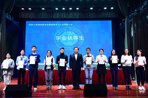 12月21日下午,深圳大學2016獎學金暨荔園學習之星表彰大會在國際會議廳報告廳舉行。副校長徐晨、黨委宣傳部、教務部、學生部、招生辦等單位領導以及各學院主管學生工作的領導、輔導員出席了此次表彰大會。 2016年,我校獎學金評選工作在“公開、公平、公正”原則下,經學生本人申請,院校兩級評審,共評選出先進班集體150個,先進個人6207人次。其中,學業優等生3687人、學術創新優等生417人、拔尖創新人才獎164人、優秀學生干部...