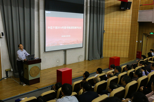 12月22日下午,我校中層干部2016年度考核述職測評會議在科技樓2號廳舉行。校黨委書記劉洪一,校長李清泉,黨委副書記陶一桃、范志剛,副校長徐晨,教授委員會主任(副主任)、教代會執行委員會委員、市級黨代表、人大代表、政協委員共219人參加會議。大會由范志剛主持。