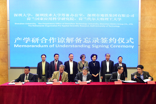 深大將培養中荷雙學位碩士博士 1月10日上午,深圳大學、深圳技術大學籌備辦公室聯合深圳市地鐵集團有限公司與荷蘭國家應用科學研究院及荷蘭代爾夫特理工大學產學研合作諒解備忘錄簽約儀式在醫學院學術報告廳舉行。荷蘭駐廣州總領事郭媚姚,助理科技參贊簡敬民,商務高級官員韓穎,深圳市地鐵集團有限公司黨委副書記李笑竹、人力資源部部長劉美滿,市政設計研究院有限公司董事長陳宜言、培訓部部長梁剛,荷蘭國家應用科學研究院城...