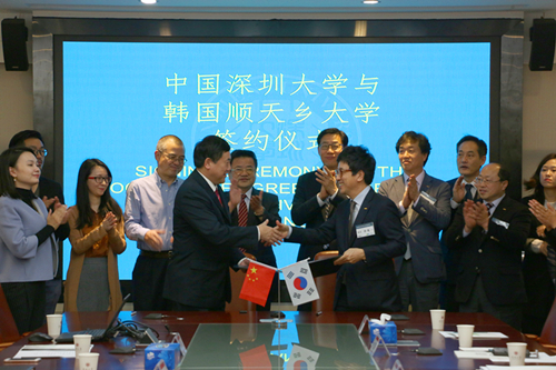 1月11日下午,我校與韓國順天鄉大學簽訂框架合作協議。韓國順天鄉大學校長徐教一、副校長金承禹,我校黨委副書記范志剛,國際交流與合作部、醫學部、教務部等相關部門負責人參加儀式?! 》吨緞倢n國順天鄉大學徐教一一行遠道而來表示誠摯歡迎,并介紹了深大基本情況。他說,深圳大學是一所特區大學和窗口大學,學校建校33年以來實現了辦學規模,辦學層次和辦學水平的快速提升,已經成為一所學科齊全、師資優良、設施完善、管理規...