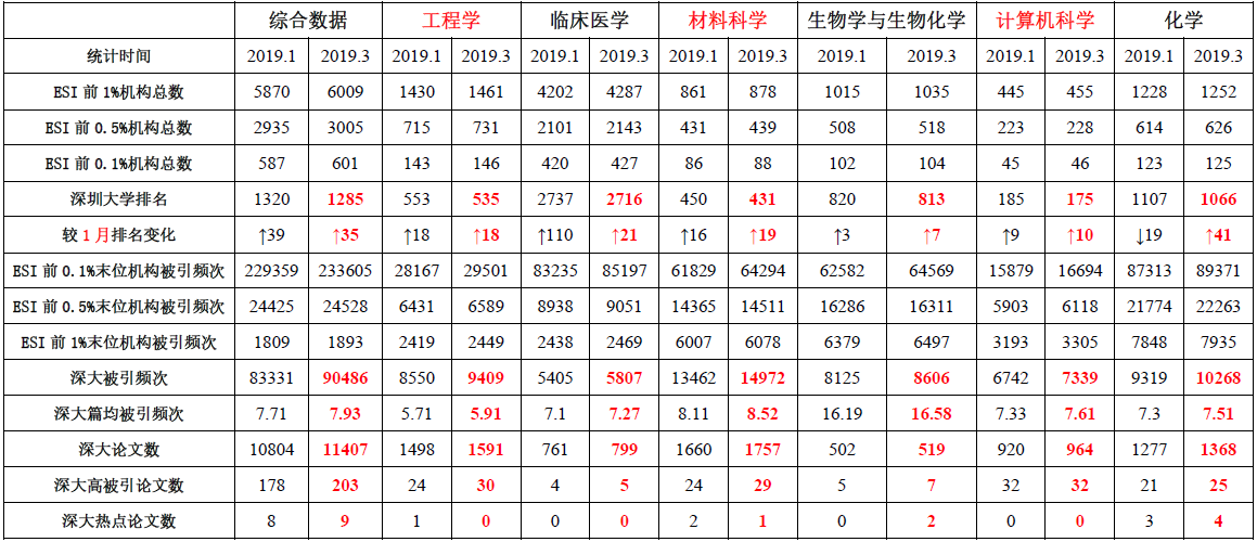 ESI數據監測最新播報:深圳大學國際排名上升35位,工程、計算機、材料進入千分之五