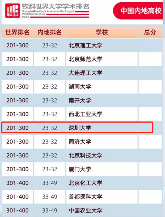2020軟科世界大學(xué)學(xué)術(shù)排名發(fā)布 深圳大學(xué)首次躋身世界300強(qiáng)