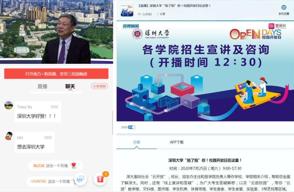 為了使廣大考生和家長更好地了解深圳大學(xué),充分展示學(xué)校的辦學(xué)實(shí)力和辦學(xué)特色,我校于7月25日舉行校園“云”開放日直播活動(dòng)。校長李清泉在直播中首先亮相,以長達(dá)一小時(shí)的訪談為“云”開放日開場。央視新聞客戶端、新華網(wǎng)、南方+客戶端、深圳衛(wèi)視壹深圳四家中央、省、市級(jí)媒體,學(xué)校新浪微博、百家號(hào)、抖音、嗶哩嗶哩等平臺(tái)同步直播,持續(xù)一天的直播吸引了大量考生、家長和網(wǎng)友的關(guān)注,截至7月28日共吸引1145.76萬人次“云游。全國...