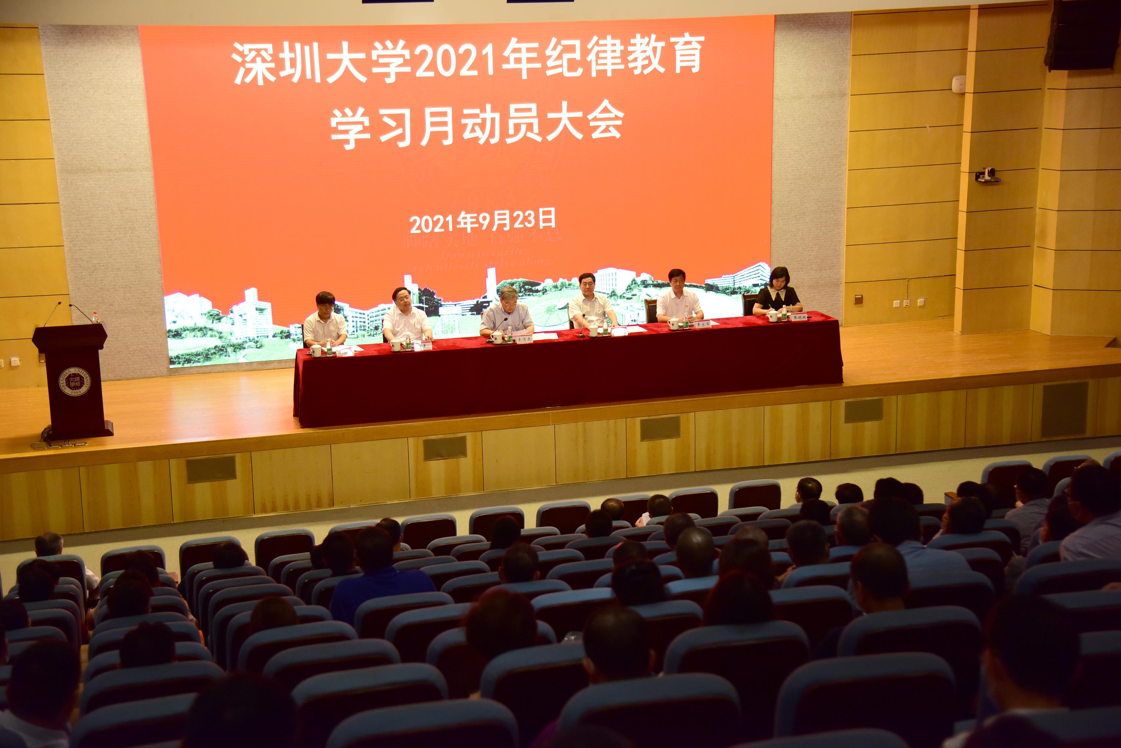 9月23日下午,深圳大學2021年紀律教育學習月動員大會在粵海校區匯星樓一號報告廳舉行。學校黨委書記、校長李清泉,學校黨委副書記范志剛,副校長徐晨、李永華、汪永成、張曉紅,全體中層干部、相對獨立科研機構負責人、各基層和附屬機構黨委和黨總支的紀委委員和紀檢委員、關鍵領域重點崗位工作人員和審計室、紀檢監察室全體工作人員參加會議。