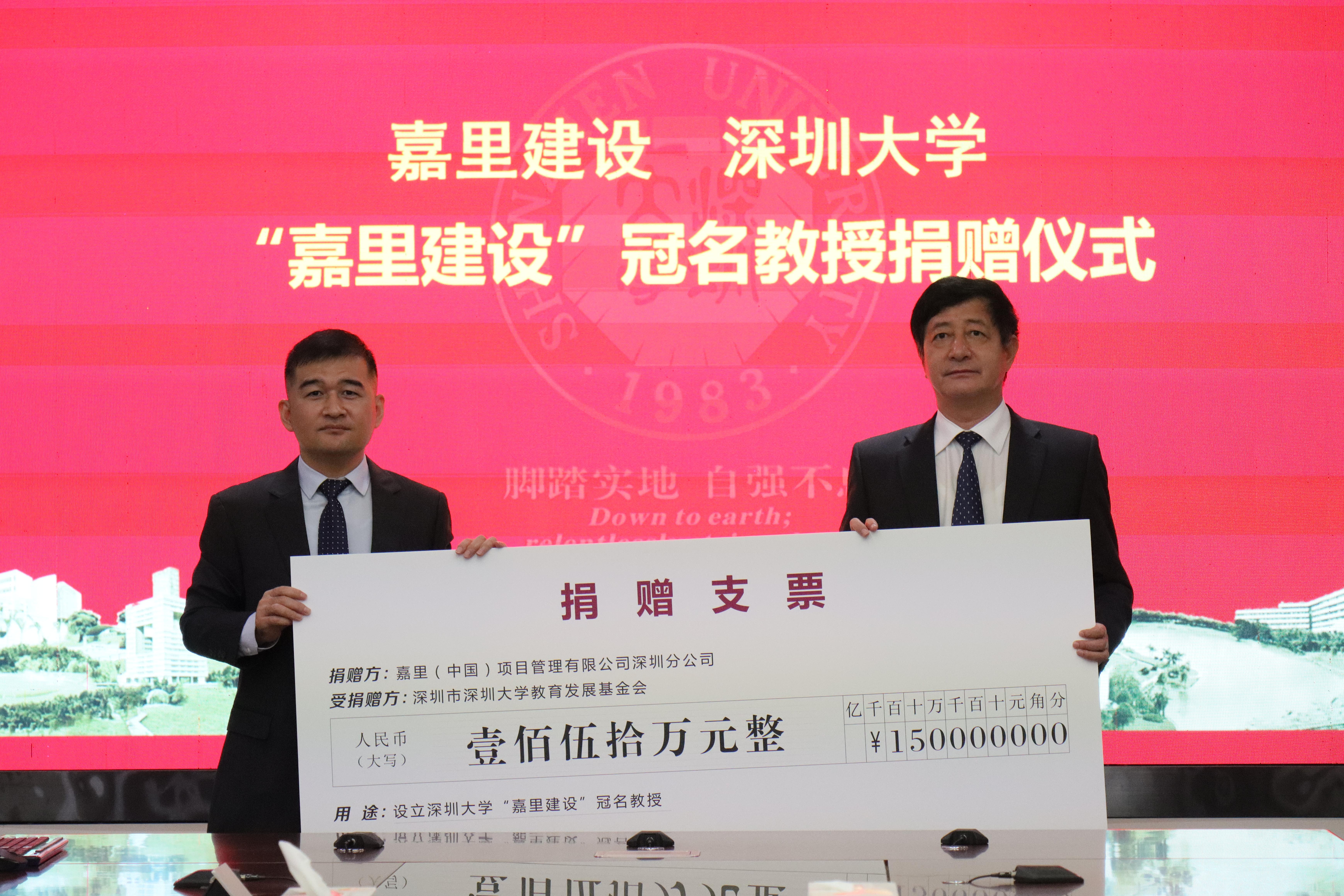10月15日上午,嘉里建設-深圳大學“嘉里建設”冠名教授捐贈儀式在我校舉行。嘉里建設(中國)有限公司向我校捐贈人民幣150萬元,注入“深圳大學人才基金”,正式設立“嘉里建設”冠名教授,用以支持我校的學術研究等工作。這是我校繼“騰訊創始友校友團隊”冠名教授設立以來,再次設立“冠名教授”席位。