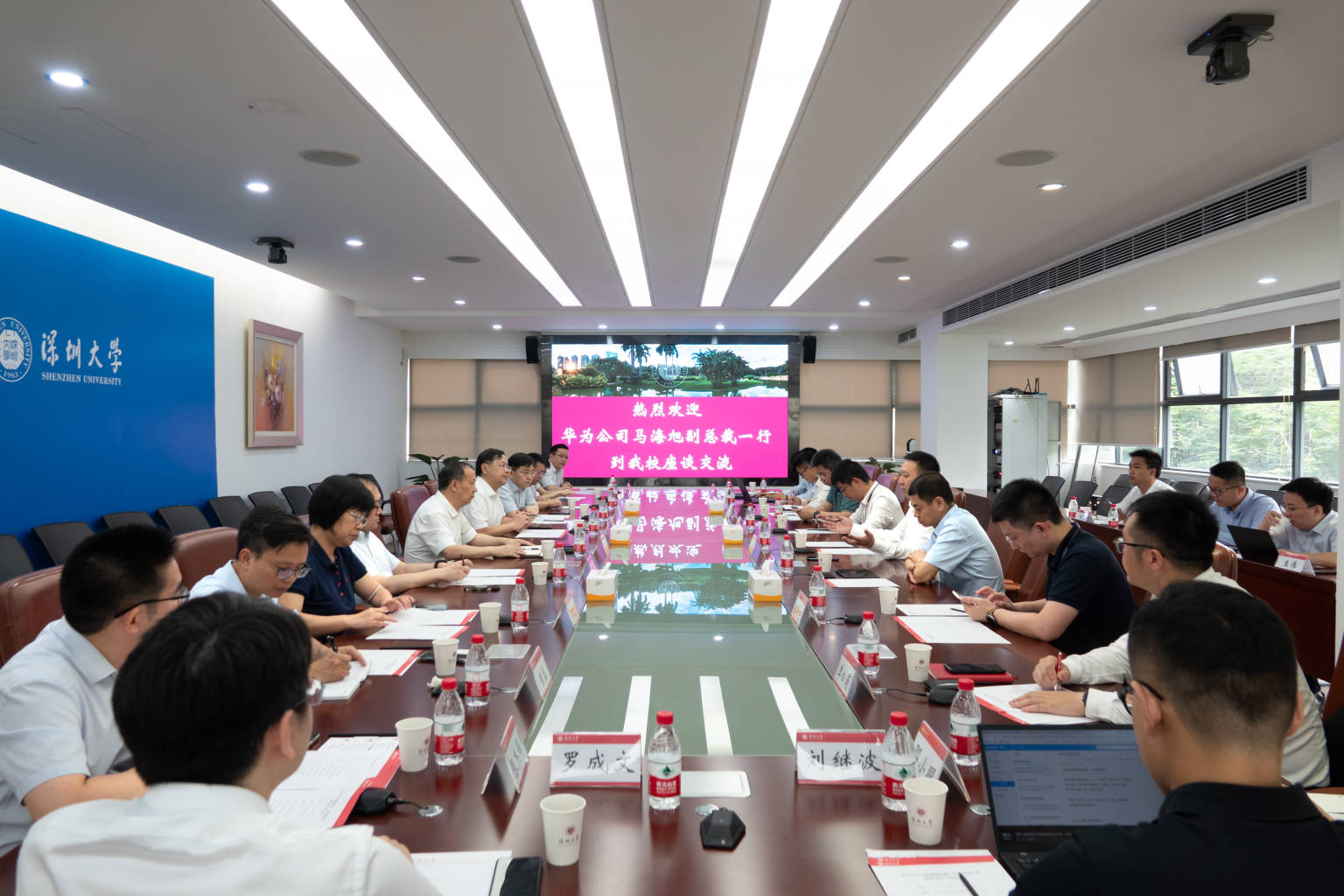 7月16日上午,華為公司副總裁、ICT產品組合管理與解決方案部總裁馬海旭一行到深圳大學交流。深圳大學校長毛軍發一行會見來賓,雙方在粵海校區匯元樓開展座談,就進一步拓寬校企合作相關事宜展開探討,副校長徐晨主持座談。