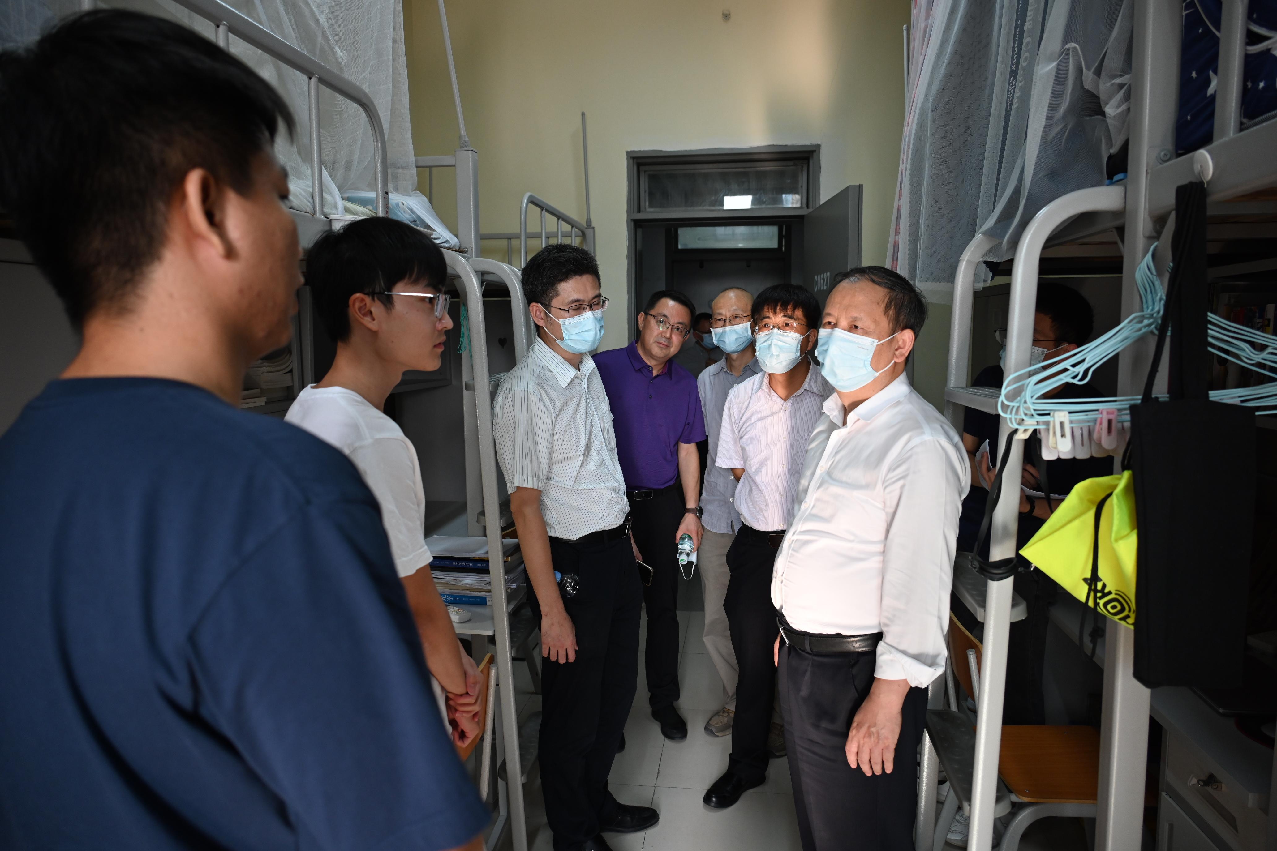 9月2日上午,廣東省委常委、副省長(zhǎng)王曦一行來(lái)到深圳大學(xué)調(diào)研檢查疫情防控工作。廣東省衛(wèi)生健康委黨組書記、主任朱宏,深圳市政府副市長(zhǎng)張華,深圳市教育局黨組書記、局長(zhǎng)陳秋明,南山區(qū)人民政府區(qū)長(zhǎng)黃湘岳、區(qū)委常委李威以及市、區(qū)教育和衛(wèi)生系統(tǒng)有關(guān)負(fù)責(zé)同志陪同調(diào)研檢查工作。深圳大學(xué)校長(zhǎng)毛軍發(fā),副校長(zhǎng)李永華、汪永成、張曉紅以及學(xué)校黨政辦公室、學(xué)生部、后勤保障部、安全保衛(wèi)部等職能部門負(fù)責(zé)人接待來(lái)賓一行。