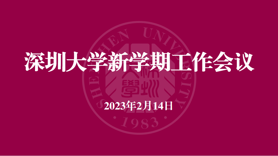 2023年2月14日下午,深圳大學在粵海校區國際會議廳召開新學期工作會議,對新學期各項工作進行部署。校黨委書記李清泉,校長毛軍發,校黨委副書記、紀委書記王月興,副校長徐晨、李永華、張學記、汪永成、周輝出席會議;全體中層干部,學部下設學院院長,相對獨立科研機構負責人,人事工作教授委員會和計財工作教授委員會主任、副主任參加會議。王月興主持會議。