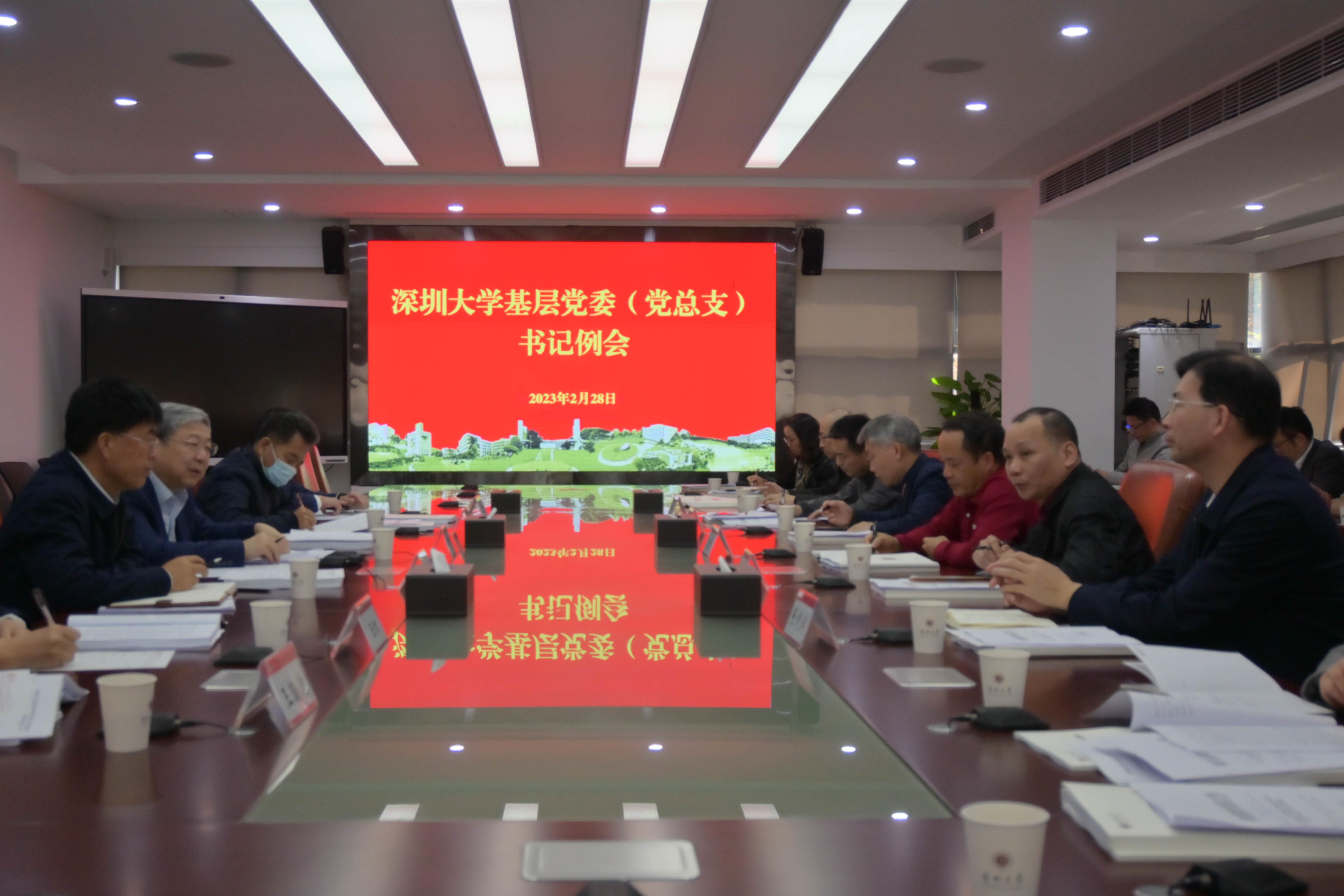 2023年2月28日上午,深圳大學在匯元樓201會議室召開2月份基層黨委(黨總支)書記例會。黨委書記李清泉主持會議并講話,黨委副書記、紀委書記王月興,副校長汪永成出席會議。