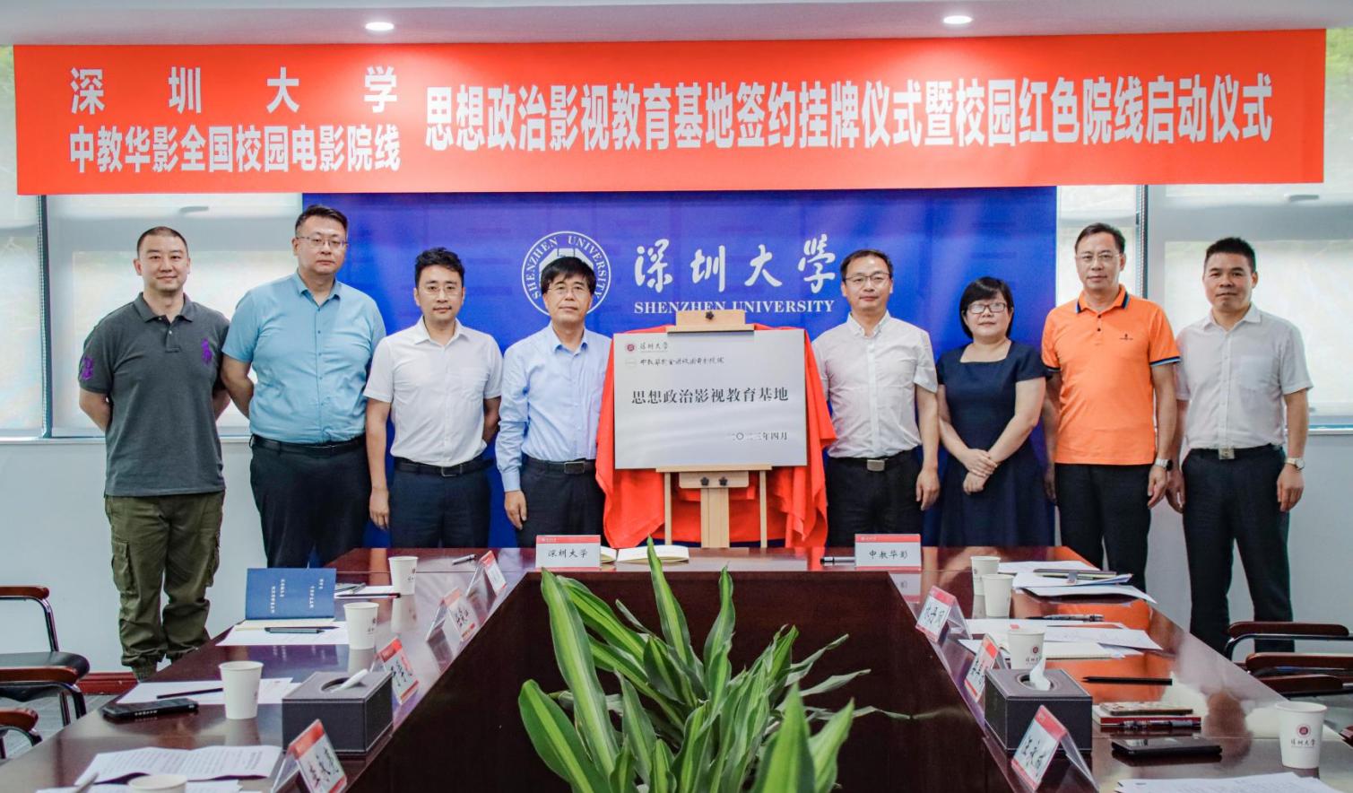 2023年5月18日,深圳大學思想政治影視教育基地簽約掛牌儀式暨校園紅色院線啟動儀式在粵海校區匯元樓103會議室召開。深圳大學副校長汪永成,中教華影電影院線股份有限公司全國校園電影院線副總經理、數字思政項目辦公室負責人李永亮出席儀式。