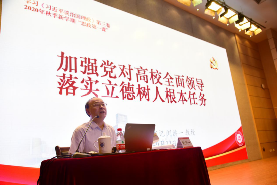 9月22日上午,學校黨委書記劉洪一作題為《加強黨對高校的全面領導,落實立德樹人根本任務》的學習輔導報告,校長李清泉主持。劉洪一圍繞第三卷第二專題“堅持和加強黨的全面領導”主要內容,從“為什么要堅持和加強黨的全面領導”和“黨對高校全面領導的要求與實踐”兩個方面暢談體會。他從歷史必然、現實需要和法律要求等三個維度解讀“為什么要堅持和加強黨的全面領導”。他緊扣學校工作實際指出,高校堅持和加強黨的全面領導的實踐路徑,一是堅持社會主義辦學方向,落實黨委管黨治黨辦學治校主體責任,發揮“把方向、管大局、作決策、抓班子、帶隊伍、保落實”的核心作用;不斷健全高校黨委全面領導的體制機制、思想基礎、具體實踐以及政治安全底線。二是突出立德樹人根本使命,堅定為黨育人、為國育才,培養“大寫的人”;創新思政教育,不斷探索特區高校思想政治教育新路徑。三是服務國家社會經濟需要,努力提升教育服務經濟社會發展能力,倡導頂天立地育人的學術文化,落實“破五唯”要求,以真正的創新服務國家戰略和城市發展。四是堅定文化自信內涵發展,深入推動文化創新發展十大工程建設,以一流大學文化建設引領高校內涵式發展。五是加強干部教師隊伍建設,落實黨管人才原則,著力加強師德師風建設,按照“四個引路人”“四個統一”“四有好教師”的要求打造教師隊伍;堅持黨管干部原則,從嚴“選育管用”,著力打造忠誠干凈擔當的高素質專業化干部隊伍。