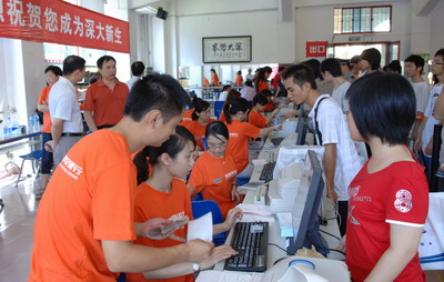 在整個迎新過程中,各學院以及校學生會學生干部始終不辭辛勞地為新生入學服務。他們飽滿的熱情和燦爛的笑容體現了深大人團結、友愛、合作的精神。