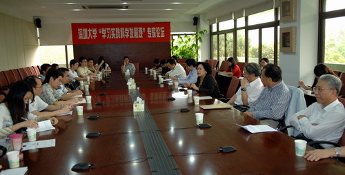 4月17日上午,我校在辦公樓201會議室舉辦“學習實踐科學發展觀”專家論壇。校黨委副書記陶一桃出席并主持會議。中國工程院院士牛憨笨教授,中國特區經濟研究中心副主任蘇東斌教授,當代中國政治研究所所長、圖書館館長黃衛平教授,校黨委辦公室副主任田啟波教授,經濟學院鐘堅教授,傳播學院吳予敏教授,法學院王千華副教授等專家學者以及20余名碩士、博士研究生代表參加會議。