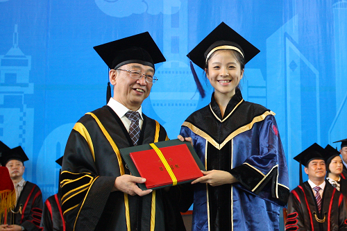在校采桑子合唱團抒情的吟唱中開始,主禮教授手持象征教育崇高和知識圣潔的深圳大學權杖,在悠揚的樂曲聲和畢業生的陣陣掌聲中,引領著校長章必功及全體主禮教授進場。