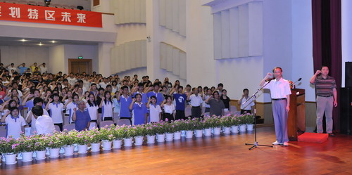 章必功對(duì)師范學(xué)院各位新黨員,特別是深大附中18名師生表示祝賀,祝賀他們正式成為中國(guó)共產(chǎn)黨黨員。章必功指出,中國(guó)共產(chǎn)黨是當(dāng)代中國(guó)最重要的政治力量,它的興衰決定了中國(guó)十幾億人民生活的好壞,加入中國(guó)共產(chǎn)黨就是選擇了一個(gè)具有嚴(yán)密組織的政治派別。他說(shuō),在這個(gè)時(shí)候加入中國(guó)共產(chǎn)黨,就是表示對(duì)這個(gè)黨有信心,沒有堅(jiān)定思想就不會(huì)做出這樣的選擇。加入中國(guó)共產(chǎn)黨,就要擁護(hù)黨的路線,執(zhí)行黨的決定,履行對(duì)黨的誓言。章必功強(qiáng)調(diào),一個(gè)政黨不是為個(gè)人而謀利益,而是作為一個(gè)改造世界的力量為社會(huì)謀利益。作為一名黨員就要做到“先天下之憂而憂,后天下之樂而樂”,“四面江山歸眼底,萬(wàn)家憂樂到心頭”。作為一名學(xué)生黨員,則要做到:一、努力學(xué)習(xí),爭(zhēng)當(dāng)學(xué)習(xí)的先鋒;二、嚴(yán)格律己,爭(zhēng)當(dāng)端正學(xué)風(fēng)、校風(fēng)的先鋒;三、敢于創(chuàng)新,爭(zhēng)當(dāng)支持學(xué)校改革的先鋒。