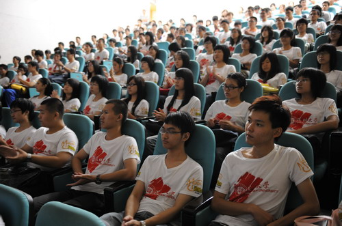 在深圳經濟特區迎來30華誕之際,胡錦濤總書記親臨深圳出席慶祝大會,讓深圳人民倍感振奮,備受鼓舞。作為深圳唯一一所綜合性大學,我校學子非常關注深圳經濟特區30周年慶祝大會的盛況,學校在科技樓三號報告廳及辦公樓等地都開放了大屏幕,供全校師生收看慶典盛況。其中科技樓三號報告廳座無虛席,數百名來自各學院的學生懷著激動的心情,透過大屏幕聚精會神地觀看現場盛況。