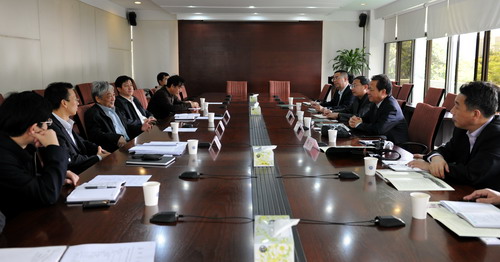 徐憲民一行聽了兩位校領導的介紹后表示大有收獲,并就人事制度改革、財務管理以及學生創業等問題與我校領導展開了深入細致的交流。