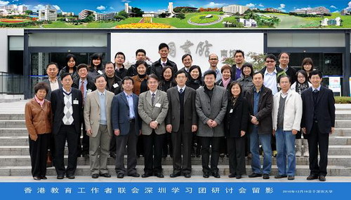 香港教育工作者聯會深圳學習團研討會12月19日在我校舉行。受教育部委托,我校承辦了本次會議,出席會議的有香港教育工作者聯會會長、副主席、理事等26位代表,中聯辦駐港有關負責人也參加了會議,教育部港澳臺辦宋波副主任到會祝賀。